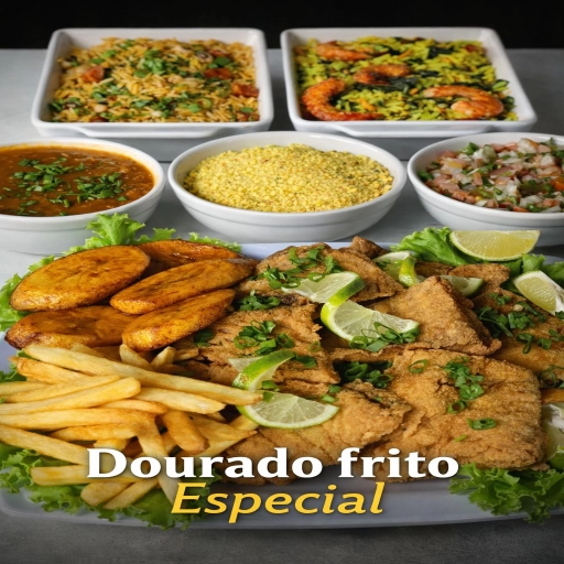 Acompanha: 02 pedaços de dourado, arroz paraense,farofa, pirão e 01 ovo cozido