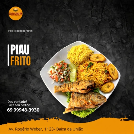 Peixe piau frito, preparado até ficar dourado e crocante. Acompanha arroz OU baião, farofa, vinagrete e banana frita. ... Ver completo